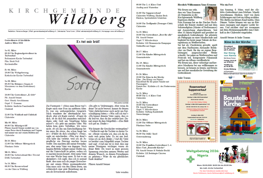 Klicken Sie hier, um die Gemeindeseite vom März 2026 herunterzuladen.
